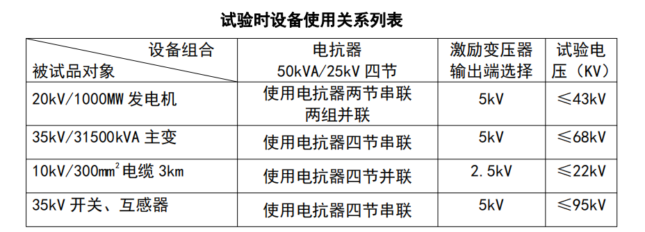 驗(yàn)證:1、20kV/1000MW 發(fā)電機(jī)的交流耐壓試驗(yàn),電容量≤0.28uF,試驗(yàn)頻率 45-55Hz,試驗(yàn)電壓 43kV,試驗(yàn)時(shí)間 1min。