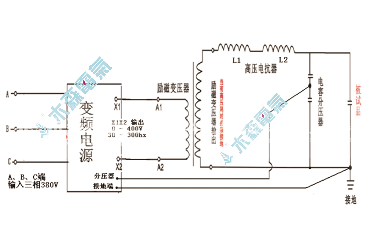 (三)變頻串聯(lián)諧振交流耐壓裝置接線示意圖