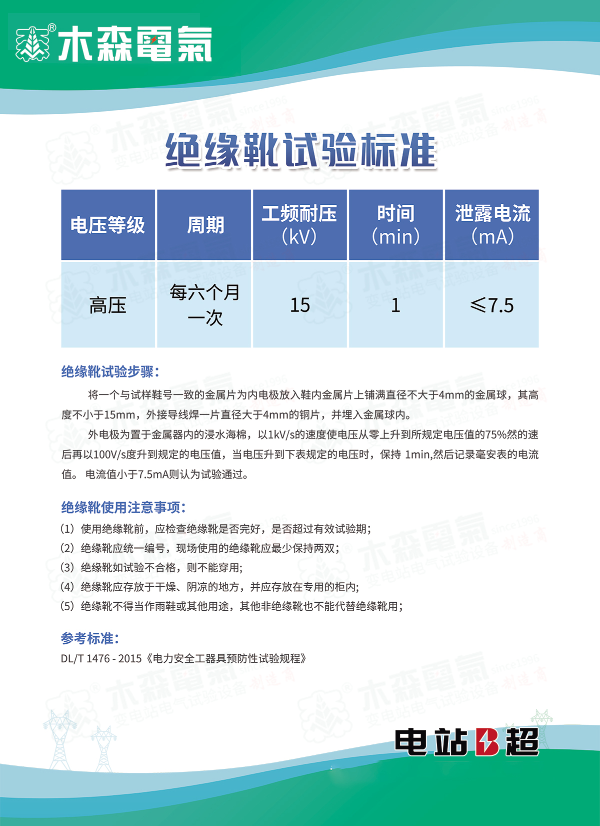 全自動(dòng)電力安全工器具檢測(cè)臺(tái)、全自動(dòng)絕緣靴手套檢驗(yàn)裝置是按照國家電力公司關(guān)于頒發(fā)《電力安全工器具預(yù)防性試驗(yàn)規(guī)程》(試行)的通知(國電發(fā)[2002]777號(hào))和國家電網(wǎng)公司電力安全工作規(guī)程(變電部分)的要求的基礎(chǔ)上研發(fā)而成。本產(chǎn)品各項(xiàng)指標(biāo)均符合國標(biāo)的要求??梢园础峨娏Π踩て骶哳A(yù)防性試驗(yàn)規(guī)程》要求對(duì)絕緣鞋、絕緣手套等安全工器具進(jìn)行智能化絕緣耐壓試驗(yàn),絕緣靴及絕緣手套耐試驗(yàn)周期為半年,試驗(yàn)過程中不允許擊穿,同時(shí)絕緣靴絕緣絕緣手套泄漏電流不大于限定值。產(chǎn)品適用于所有與電力相關(guān)行業(yè)。
